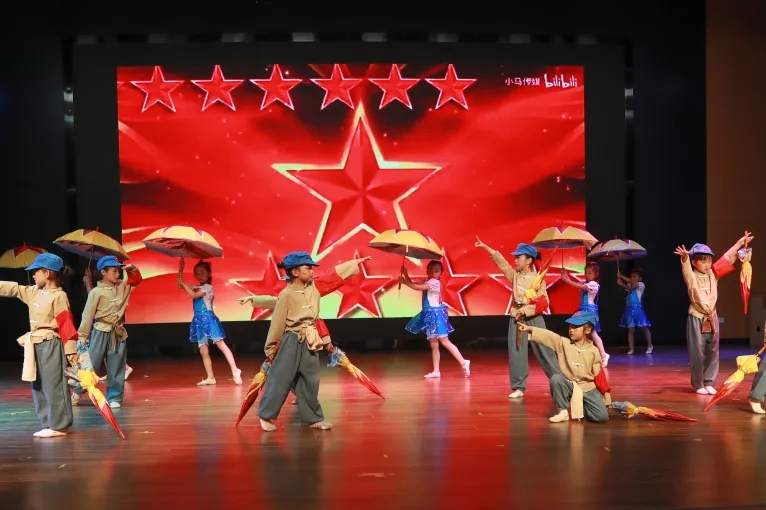 抚州市文化馆“免费艺术培训进校园”活动组织创排的童声联唱、采茶戏、舞蹈等特色文艺节目在抚州市第二实验学校2023年“竞秀红心月”星火社团联盟文艺汇演中登台亮相