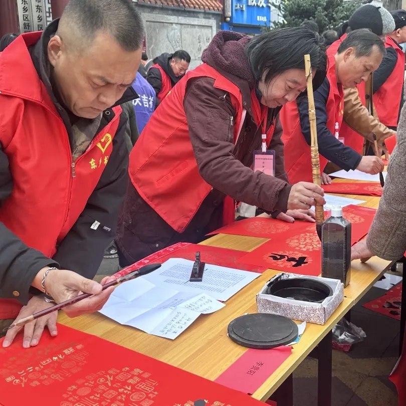 锦毫泼彩描新象,雅墨含情赋盛时。1月11日,由江西省文化和旅游厅指导,江西省文化馆、抚州市文广旅局主办,抚州市文化馆承办,联动各县(区)文化馆开展的抚州市2025年“贺新春送万福进万家”文化惠民活动正式启动,并同步进行书写春联活动。抚州市各地活动现场气氛热烈,书法家们挥毫泼墨、以笔传情,把团圆的期盼和幸福的憧憬藏于笔墨之内,给人民群众送上新春祝福。