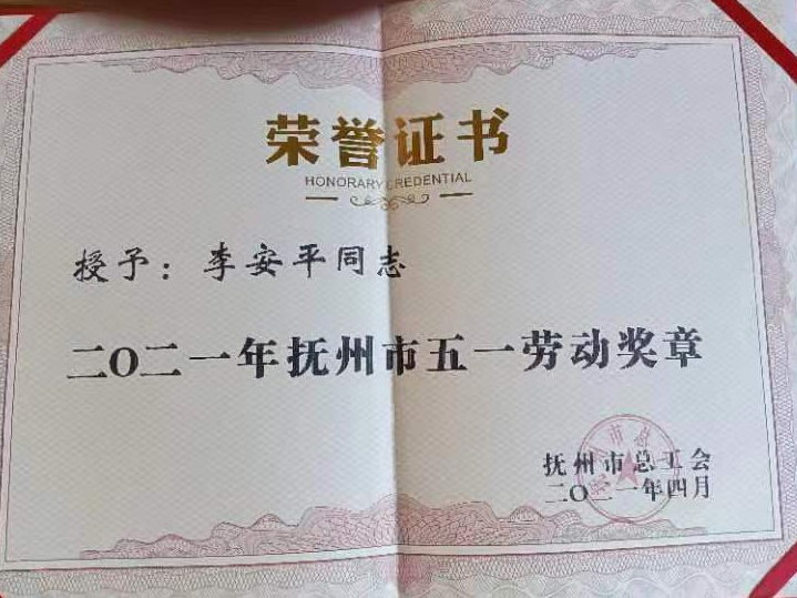 2021年,李安平被授予“2021年抚州市五一劳动奖章”。